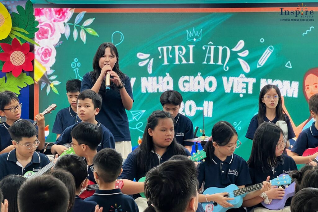 🎶✨ Trong không gian lắng đọng của buổi lễ tri ân ngày Nhà giáo Việt Nam, từng giai điệu vang lên như chạm vào trái tim. Mỗi bài hát, mỗi bước chân trên sân khấu không chỉ là màn biểu diễn, mà là lời nói hộ những điều khó nói thành lời: “Con biết ơn Thầy Cô thật nhiều.”