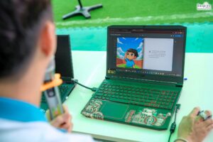 Và khi bước vào “Thiết kế trò chơi”, cả không gian như bùng nổ! Những dòng code đầu tiên, những nhân vật game đầu tiên – tất cả đều do chính tay các bạn tạo ra. Ở đó, học sinh không chỉ chơi game – mà đang tạo ra thế giới của riêng mình.