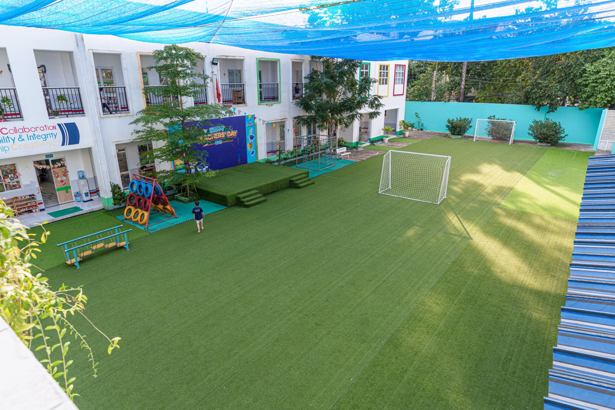 Ngoài ra, học sinh còn được học các bộ môn thể dục, bóng đá, bóng rổ, nhảy cao, giúp tăng cường phát triển thể chất, đồng thời nâng cao tinh thần đồng đội.