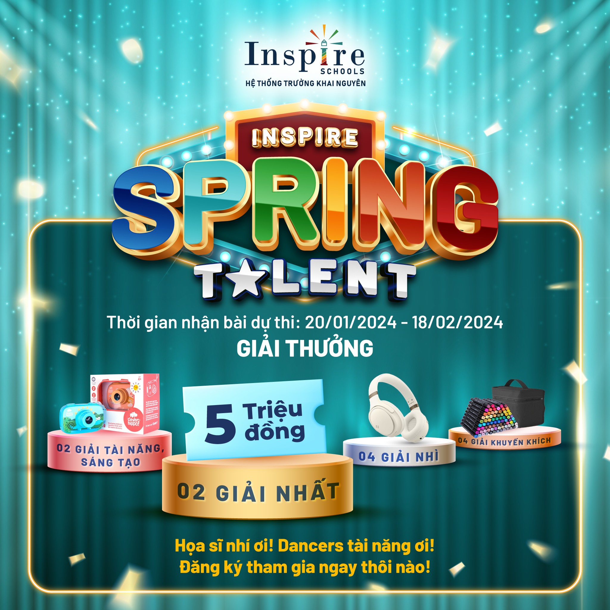 Ngoài phố tung bông nở hoa, thì Inspire – Khai Nguyên cũng “bùng nổ” cuộc thi 𝐈𝐧𝐬𝐩𝐢𝐫𝐞 𝐒𝐩𝐫𝐢𝐧𝐠 𝐓𝐚𝐥𝐞𝐧𝐭 với loạt quà tặng vừa xịn vừa mịn với 02 phần thi cho các bạn tùy thích lựa chọn tham gia nè: